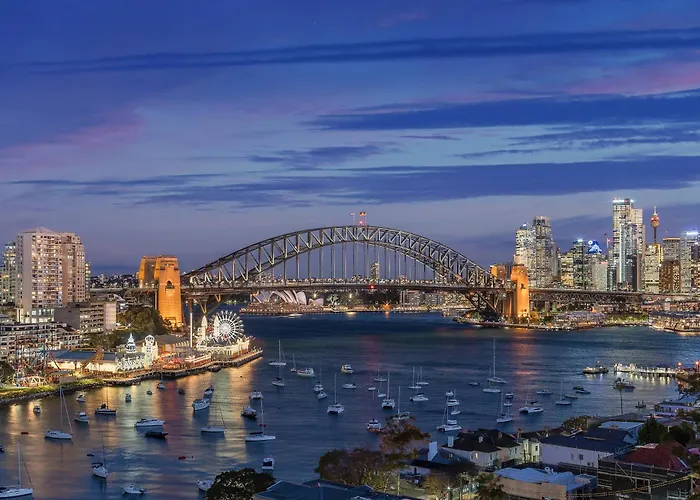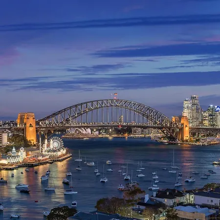Panoramic Sydney Harbour Views From Luxury 1-Bedroom Apartment In Mcmahons Point de 60 m², situé dans la localité de "McMahons Point", à moins de 20 minutes à pied de la Maison de l'amirauté, offre une vue sur la ville.